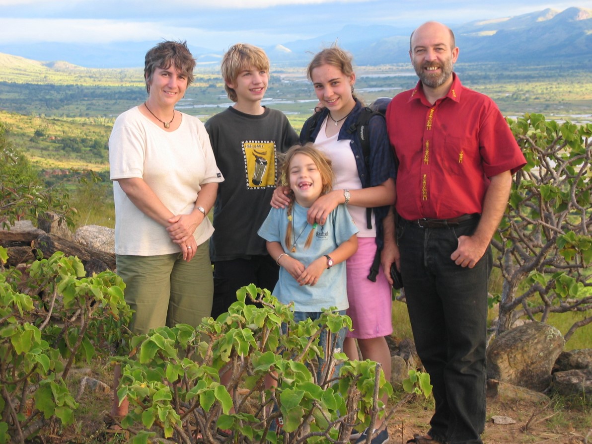 FAMILIE: F.v. Sonja, Hans-Christian, Sophie, Klaus-Christian og Alma flytta til Madagaskar i 2002. Foto: Privat− Ei gruppe eldre damer, aktive i den gassiske vekkingsrørsla, kom alvorstynga til meg ein dag, byrjar han.Dei har stor respekt for sjølvaste misjonæren, legg han merke til.− Det hadde skjedd noko forferdeleg i nabolandsbyen, og eg måtte berre bli med. Eg fekk ikkje heilt klart for meg kva det var, men sette meg i bilen med dei, fortel han.Ei alvorleg stemning pregar bilturen. Spenninga bygger seg opp. Han lurer fælt på kva som møter han der framme.− Vi stoppa ved eit tre utanfor ei lita kyrkje. Dette treet hadde vonde ånder i seg. Difor hadde det skjedd mykje forferdeleg her, fortalde dei. Eg måtte be for treet og drive ut dei vonde åndene i Jesu namn, fortel Klaus-Christian, utan å latterleggjere gassarars verdsbilete eller at det finst ei åndeleg verkelegheit.Nei, det komiske her er heller han sjølv i fugleperspektiv, der han går rundt treet med desse kvinnene i finstasen, og etter kvart fleire andre som er langt meir erfarne enn han i dette. «Eg er ikkje utdanna til slikt», prøver han til og med, men til inga nytte. Det er berre å ta beina fatt.− Eg prøvde hardt å ikkje tenke på kva dei som kjenner meg ville sagt om dei såg meg no.Kanskje for å rømme inn i eit nytt tema, kjem det like etter fram at han ein gong overlevde ein dramatisk syklon.− Eg var i Mikoboka-fjella, og det hadde storma og regna i enorme mengder. Skodda var så tjukk at ein ikkje kunne sjå noko framfor seg. På dag tre sat eg fullstendig vêrfast i ein avsides landsby saman med gassiske kollegaer. Vi hadde ikkje mobil, var redde og totalt hjelpelause, huskar han.Brått ser dei eit helikopter lande. Det kan ikkje vere mogleg i dette tåkehavet, tenker dei.− Det er eit under at dei fann oss. Helikopterpiloten, utsendt frå ein sveitsisk misjonsorganisasjon, risikerte livet ved å lande. Eg gløymer aldri då han alvorleg såg på meg og med skjelvande stemme sa at eg måtte vere hans co-pilot. Heldigvis hadde eg gått så mykje rundt i området at eg kjende fjellsidene. Vi kom oss til Tulear, der familien venta.
